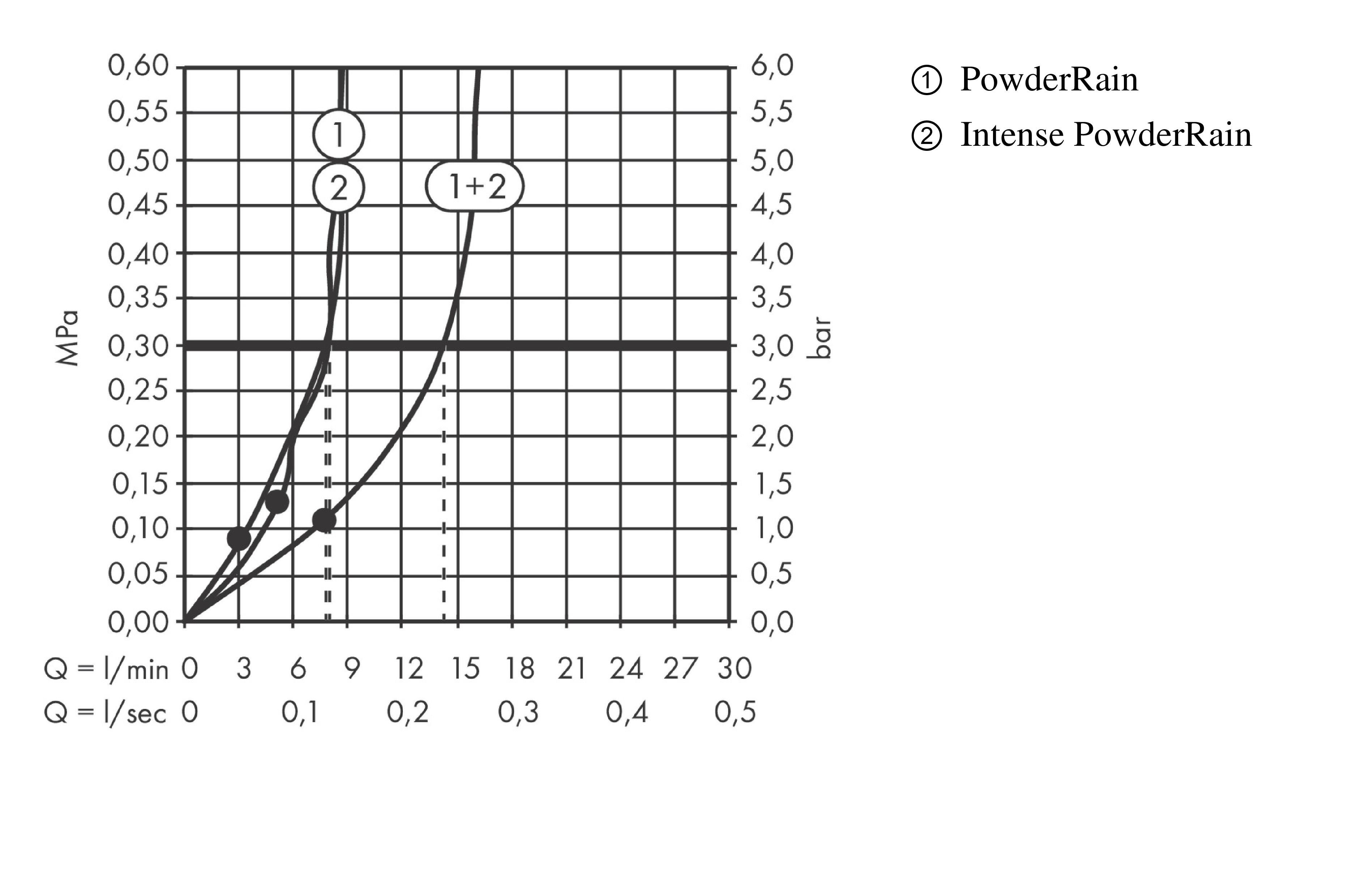 - caudal del chorro PowderRain (a 3 bar): 8 l/min