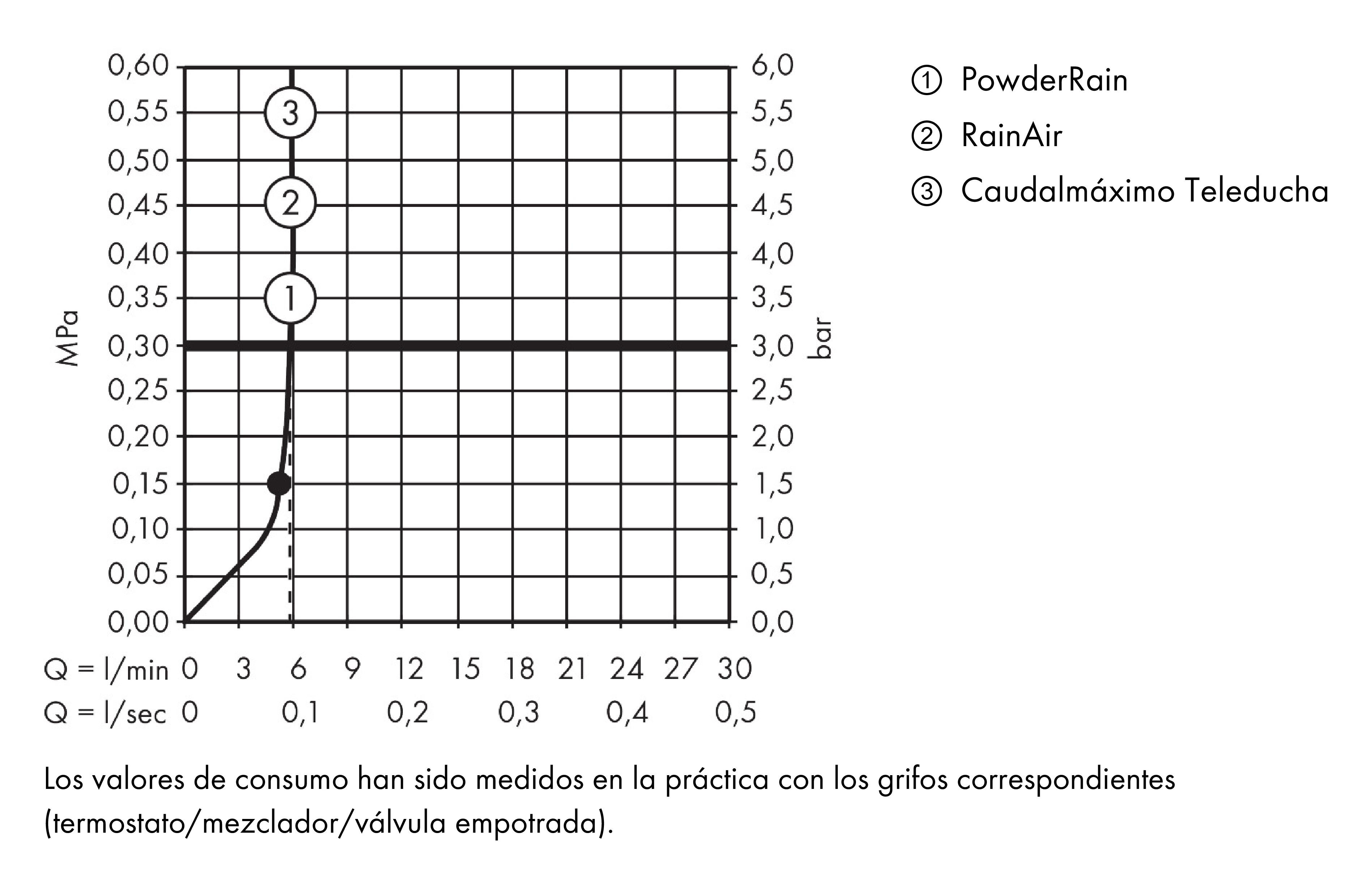- caudal del chorro PowderRain (a 3 bar): 5.5 l/min